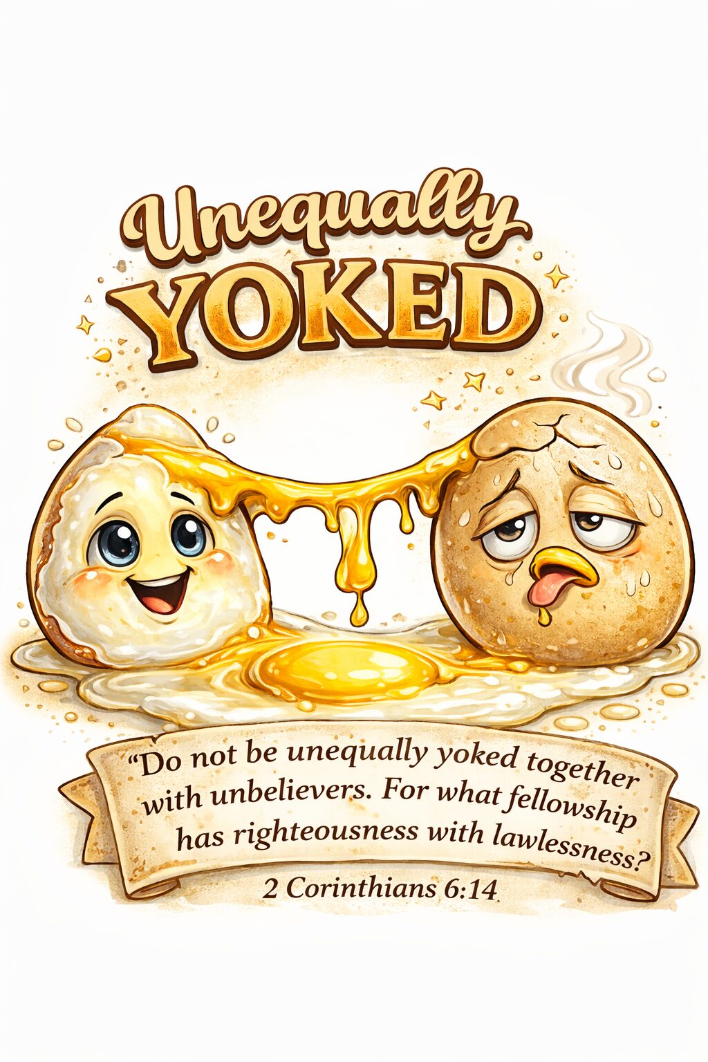 Unequally yoked warns believers about forming binding partnerships with those who do not share the same faith or values. It encourages unity, balance, and spiritual alignment in relationships.