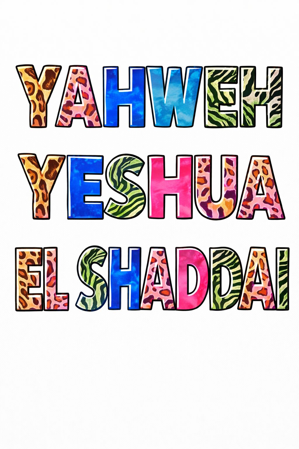 This t-shirt features the sacred names Yahweh, Yahshua, and El Shaddai, honoring God’s power, presence, and promise. Each name reflects a different aspect of His nature—Creator, Savior, and Almighty—making this design a bold expression of faith, reverence, and devotion.